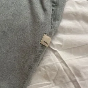 Soft heather gray pants with a comfortable fit. Features a subtle Vuori logo tag.