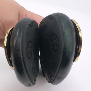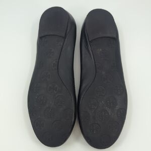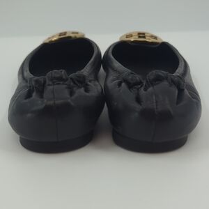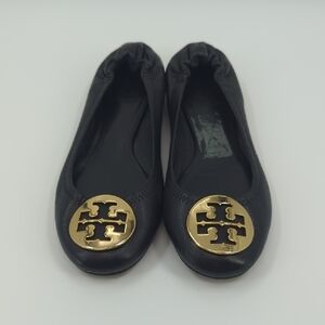 TORY BURCH Minnie Travel Ballet Flats Black Leather Gold Reva Logo Sz 6.5