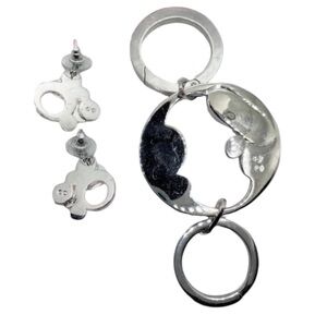 Swarovski AB Crystal Cabochon Rhinestone Silver Tone Keychain and Earrings Set