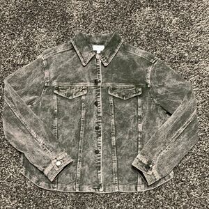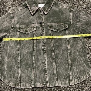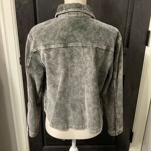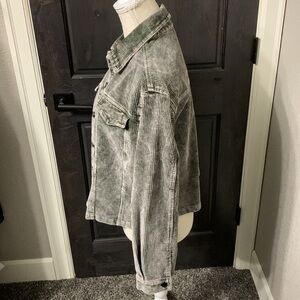NWOT acid washed dark green & gray. Faux front flap pockets.