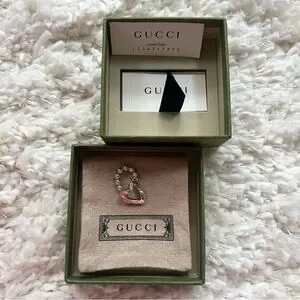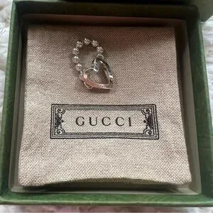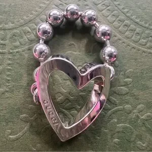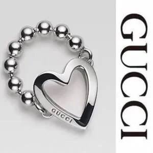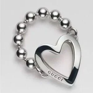 Stylish Gucci ring with a heart design. Features a beaded band. Adds a chic touch.