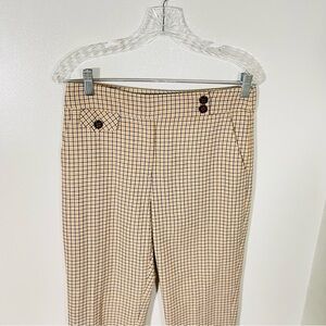 Veronica Beard Renzo Skinny Ankle Trouser Pants Gold Tan Plaid Quiet Luxury