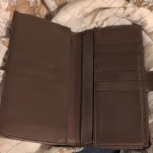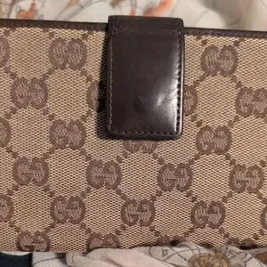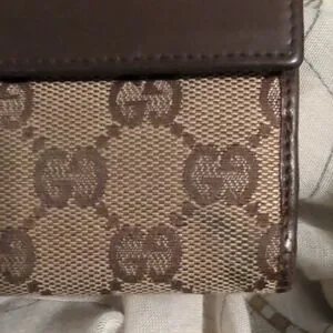 Gucci Signature Brown and Cream Clutch Vintage Italy Wallet
