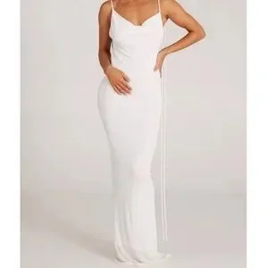 Melani Long Laces Draped Cowl Backless Maxi Dress 🕊️