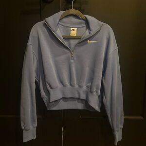 SoulCycle exclusive 1/2-Zip Cropped Sweatshirt by Nike. Luxe, soft and the perfect pick for lounging in style. Designed with a flattering cropped fit and a 1/2 zip for an elevated silhouette. Features "SOULCYCLE" in white down the arm. In perfect condition! 🩵