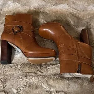Clarks Gabriel Mix Tan Leather High Heel Ankle Boots – Size 6.5M