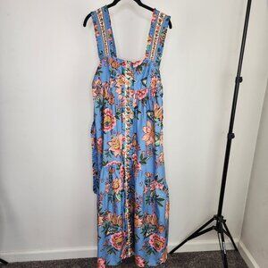 NWT Farm Rio Wonderful Bouquet Blue Sleeveless Maxi Dress Size Medium