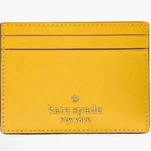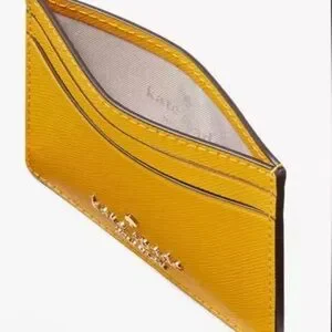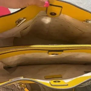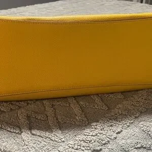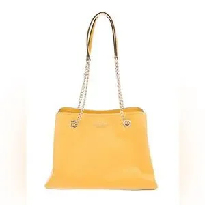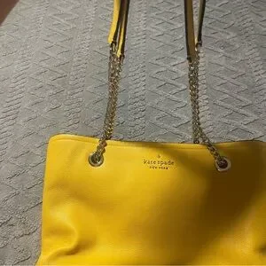 Bright yellow Kate Spade shoulder bag with chain straps. Elegant and stylish design.
