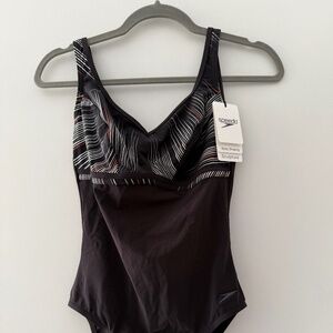 NEW Speedo Sculpture Body Shaping One-Piece Swimsuit, Black/White, Size 8