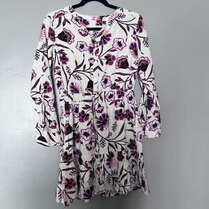 LOFT Floral Tunic Blouse Women’s Size SP White Purple Print 3/4 Bell Sleeve Top