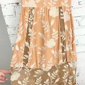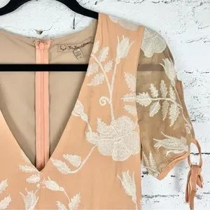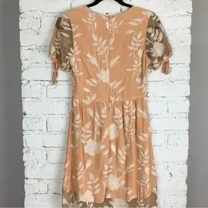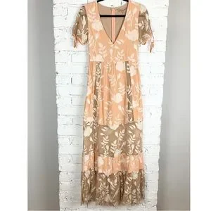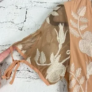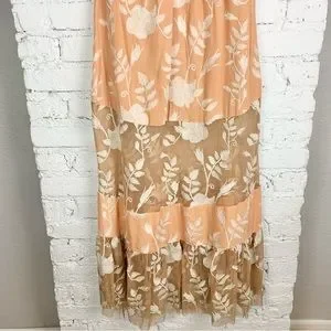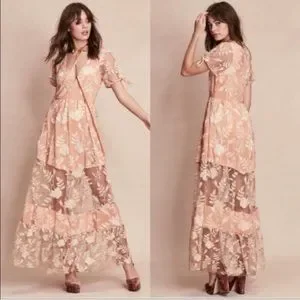 For Love & Lemons Mia Maxi Peach Lace Dress Floral Embroidered Sheer Panel XS