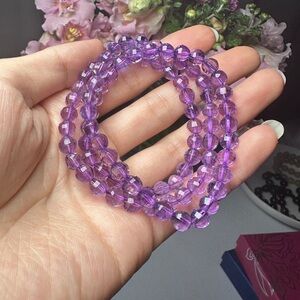 This elegant jewelry set features a multi-layer amethyst bracelet and a matching ring, both crafted with natural faceted amethyst beads.