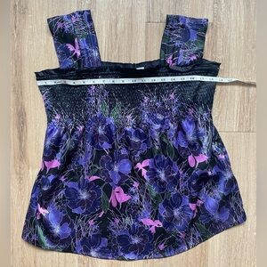 Portmans Black & Purple Butterfly Sleeves Shirring Bust Tank Size 10