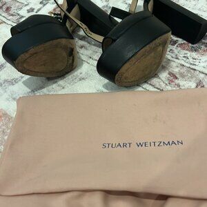 I've worn these heels only once for an event -- they're the Black Ryder 95 Platform Sandal in Black Leather, Size 8.5. Product details below come directly from Stuart Weitzman website: