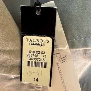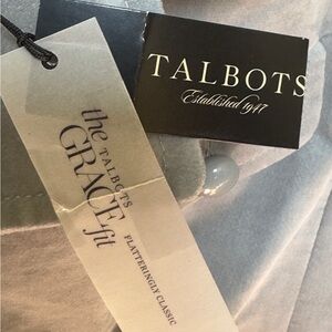 Chic Talbots blazer in light gray. Features button closure and front pockets. Ideal for professional or casual wear. Has 3 ways to wear the collar shown in picture. With extra buttons.
