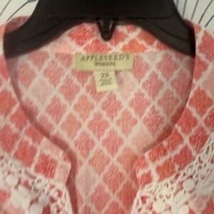 Appleseed's Pink and White 3/4 Sleeve Tunic with Bib Collar plus size 2X women