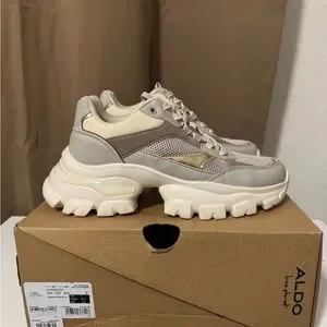 Chic Aldo sneakers with a modern chunky style. Cream and gold details. Ideal for everyday wear.