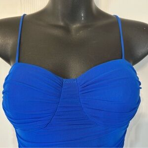 Royal blue ruched dress from Windsor. Fitted silhouette with side cutout, sweetheart neckline, and adjustable straps. Stretch fabric with full lining. Tagged size small. In excellent condition.