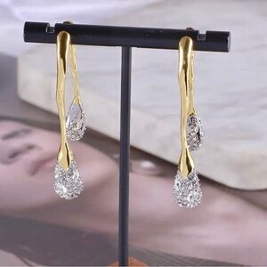 An Update to One of our Best-Selling Styles, this Front-Back Earring Silhouette is Designed with 14K Gold Plated Liquid Metal Work Melding into Two Sculpted Drops Accentuated with Meticulous Hand-Set Pave Crystal. Signed for Authenticity.