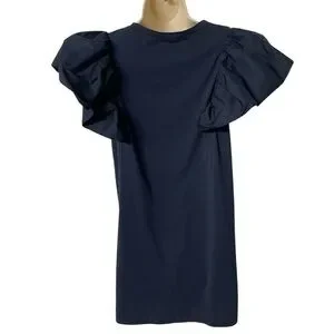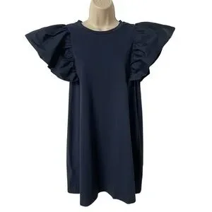 TCEC Ruffle Sleeve Navy women’s Mini T-shirt Dress size Large casual stretch new