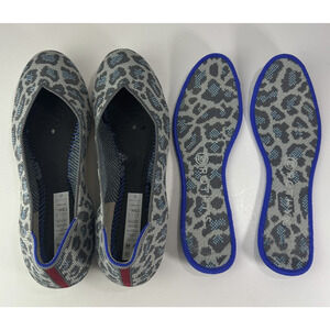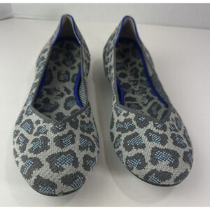 Rothy's Round Toe The Flat Ballet Slip On Knit Shoes Leopard Animal Print Sz 8.5