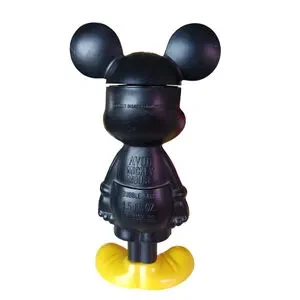 The short Mickey is an Avon bubble bath bottle,empty, and is about 7" tall. He is made of thin plastic.