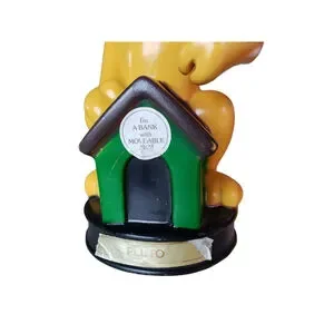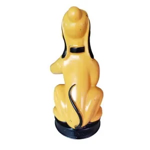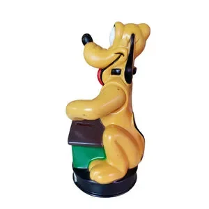 The Pluto, is a piggy bank and is about 8.5" tall. Holds the coin in his paw and drops it when moved down to the slot. He is made of thick plastic and is missing his plug.