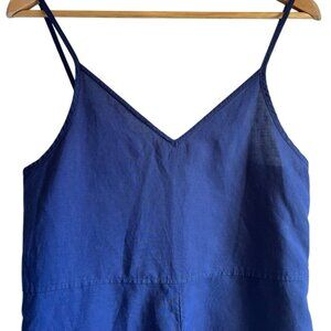 This is a Uniqlo linen blend sleeveless wide leg cropped romper. It’s a loose fit with spaghetti straps, v-neck and pockets. It’s a size XS and in excellent condition
