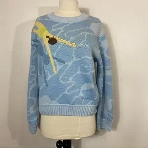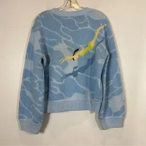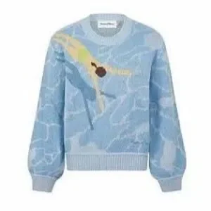 Stylish crew neck sweater. Features a unique swimmer design. Soft and comfortable fabric.