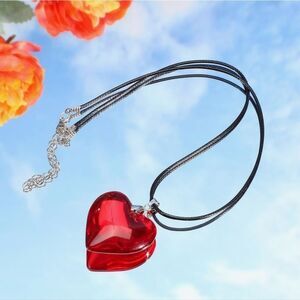 🔹️NIB Red Puffy Glass Heart Pendant Necklace