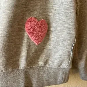 ZHRILL Grey Cotton Sweatshirt Sweater with Heart Appliqués size Small