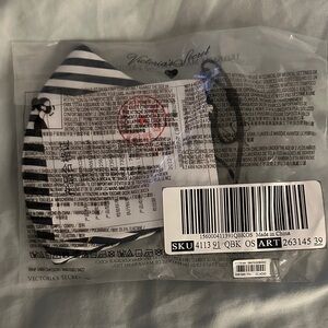 Elegant mask with bold black and white stripes. Features adjustable ear loops.