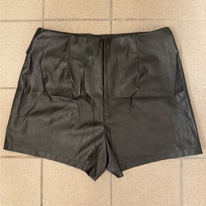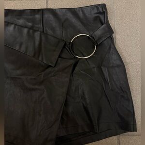 Stylish black faux leather skort with a silver ring detail. In great condition, only call out is behind the ring, where the silver has rubbed a little on the skirt.