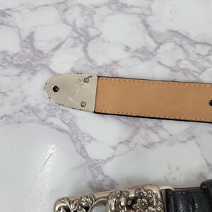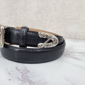Brighton Vintage 90s Black Leather with Silver Toned Cat Filigree Buckle