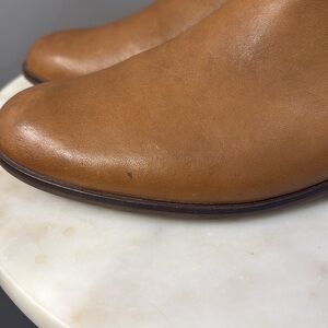 Frye Mallory Chelsea Booties. Size 10, NWOT condition. Only callouts are 2 small dark spots in the leather. Color is Cognac. A timeless addition to your boots collection, this classic pair of Chelsea boots boasts a rich leather construction that promises to patina beautifully with the passing of the seasons. Features leather upper and elasticized gores at the sides for ease of wear. Veritable icons of American culture, Frye boots and shoes have a 150-year history grounded in fine craftsmanship and the very best full-grain leathers.