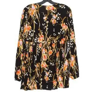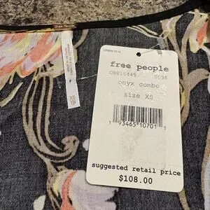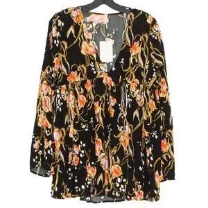 NWT Free People Tunic Top Bella Babydoll Floral Boho Whimsigoth Cottage Black XS