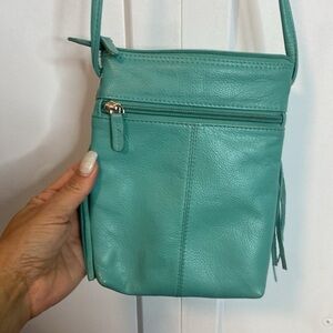 Stylish teal crossbody bag with fringe detailing Perfect for adding a pop of color to any outfit