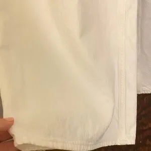 Chic white pants with a stylish button detail. Ideal for versatile wear. Wide leg inseam 30, high rise.