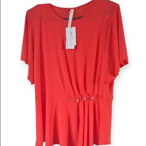 New NY Collection Women's Orange Blouse Pearl-like Accent Fashionable Size XL