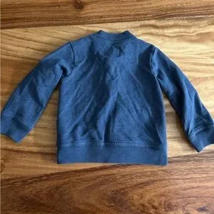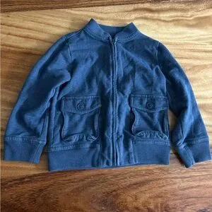 Cozy navy jacket with front pockets. Easy zip closure. Ideal for layering.