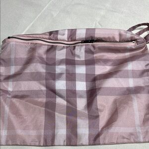 AUTHENTIC Stylish pink plaid bag. Comes with extra buttons. Has a zipper to access the inside. Windbreaker jacket not included.