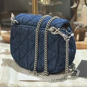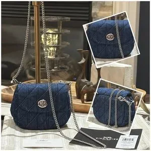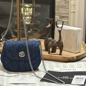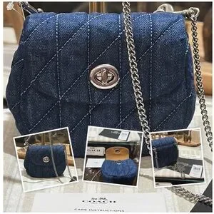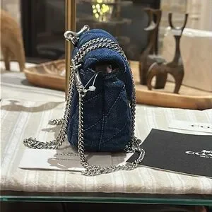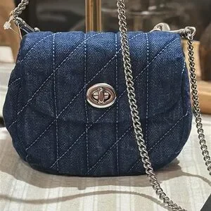 Carry your essentials in style with the Turnlock Card Case. Crafted of denim and smooth leather, this chain card case exudes understated elegance. It has space for your cards, cash and a few small extras—perfect for quick errands or a night out. This denim card case on chain also features an interior card slot for added organization. It’s finished with our iconic turnlock closure to keep everything in place.