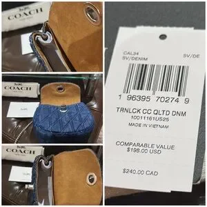 Authentic Coach Turnlock Card Case with Quilting & Silver-Toned Hardware, NWT