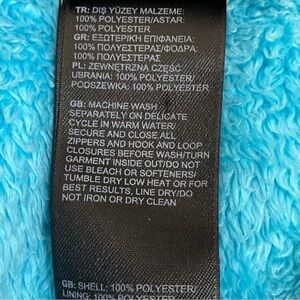 -Machine wash warm separately delicate cycle inside out, tumble dry low