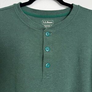 LL Bean Henley Shirt Men XXL Tall / 2XLT. Green, Unshrinkable. Mini-Waffle. Traditional Fit. 100% cotton fabric is fade and pill resistant.