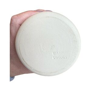 Charming ceramic vase featuring a red and green floral design. Perfect for adding a touch of elegance to any room. Swedish artisan. This base is in excellent condition. Measures 4.5” high by 3” wide.