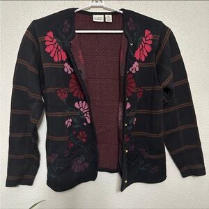 Classic Elements Embroidered Plaid Floral Cardigan Sweater - XL