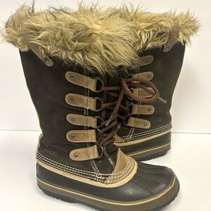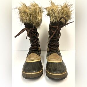 Sorel Snow Boots Womens 7 Joan Of Arctic Brown Suede Lined Winter Waterproof