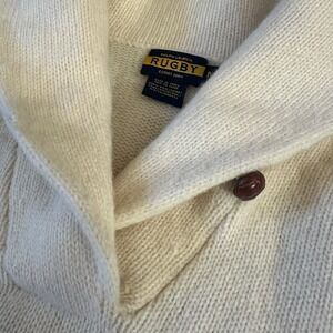 Ralph Lauren Rugby Womens Shawl Collar 100% Wool Sweater CREAM Sz Medium Slim Excellent Condition