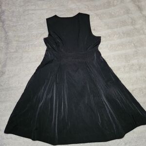 The Simply Vera Wang Fit & Flare dress in size 14 is a classic choice for various occasions. This sleeveless dress features a V-neckline and a side zip closure for easy wear. It also has pockets. The knee-length dress is made of polyester and nylon material, with a velvet band accent on the waist adding a touch of elegance. The dress is ideal for parties, cocktails, or casual events, making it a versatile and stylish option for any season.
